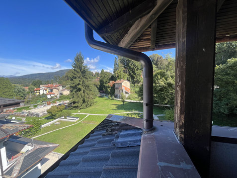 Ghirla, nel comune di Valganna, in zona centrale e contesto di gradevole condominio recentemente ristrutturato che dispone di bel giardino comune vendiamo uno spazioso appartamento trilocale di 120 mq corredato da due balconi di ampia metratura (per una superficie totale di 35 mq) e ben esposto composto da ingresso, sala servita da une dei due terrazzi, disimpegno, cucina abitabile, ripostiglio, due camere da letto, con uscite nel secondo balcone e doppi servizi. L'edificio da poco ha subito interventi di riqualificazione per rifacimento totale del tetto e del cappotto, quindi anche la facciata è stata completamente rifatta. All'immobile sono abbinate anche un'autorimessa coperta per auto singola e una cantina. Appartamento affascinante e sicuramente da visitare! Euro 155.000.